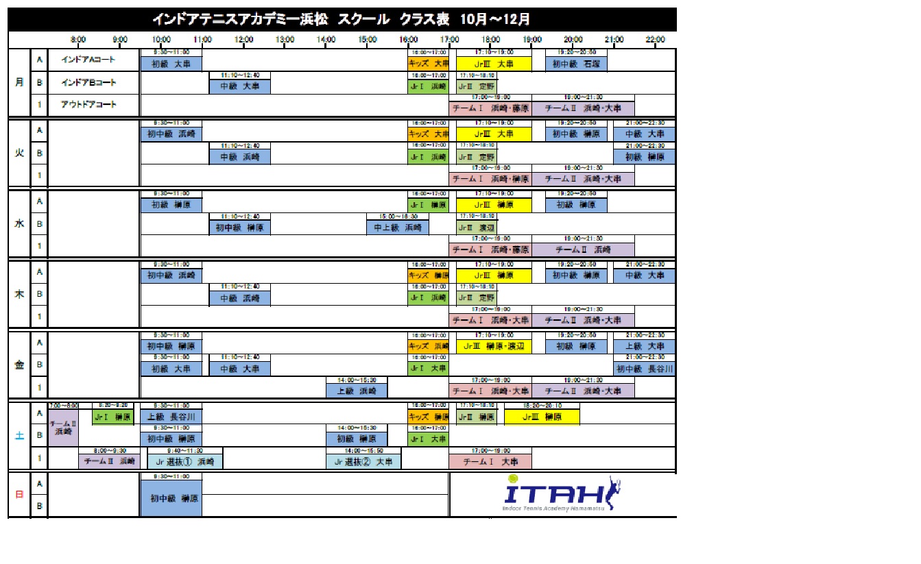 スクールタイムテーブル(一般・キッズ・ジュニア・チーム)